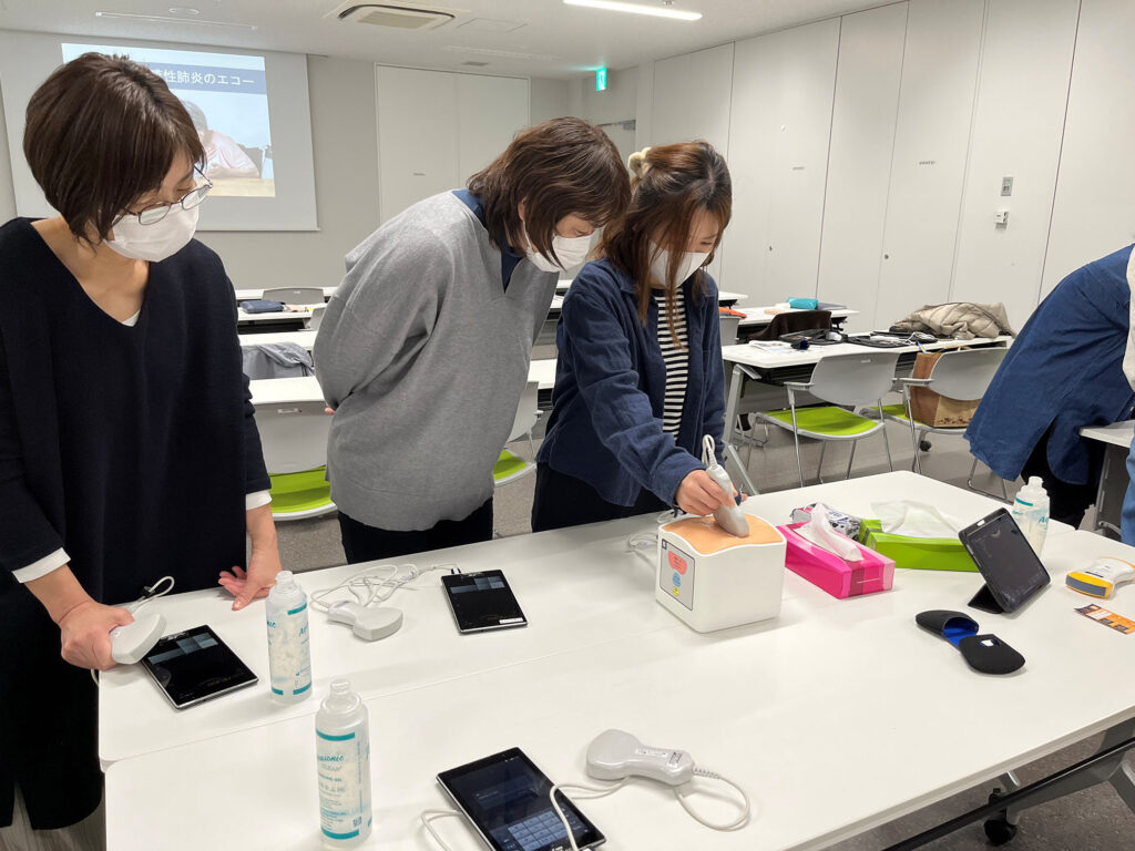 「目で見て確認できることで判断に自信が持てる」「在宅での排泄ケアや観察にすぐに活かせそう」といった声も聞かれ、訪問看護におけるエコー活用の可能性を実感する研修となりました。